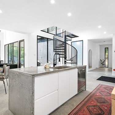 All of the windows, doors, and the custom spiral staircase were designed and built in China and imported specifically for this project. This approach not only reduced costs but also added a refined, luxurious feel that complements the home’s modern aesthetic.