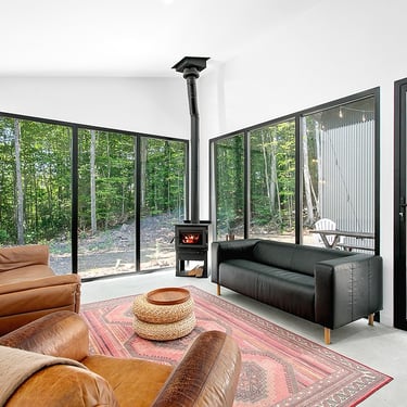 Sol Properties designed and built a striking modern single-family home nestled in the woods of Mayo, Quebec. The home was constructed entirely by hand, showcasing craftsmanship and attention to detail in every element.